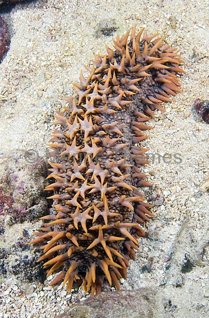 Red Holothurian (Thelenota ananas) or Prickly Red Fish foraging on coral sand. Commercial species collected for food and medical use.