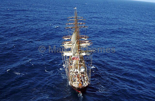 Stern view of schooner at sea. Stern view of schooner at sea. single one alone lonely isolated individual sail sails sailing yacht yachting boat tall ship ships historic historical rig rigging vertical shipping Water and Light |Stern view of schooner at sea.
