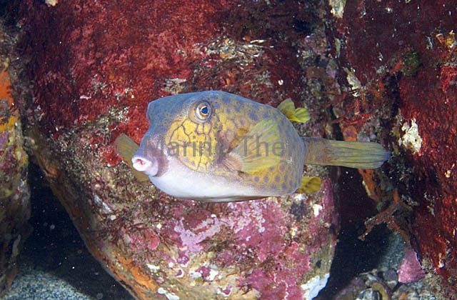 Immaculate Boxfish (Ostracion immaculatus) feeding on sessile animals on rocky reef. single one alone lonely isolated individual spots spotted dot dots dotted spot speckled specks colour color colourful colorful vibrant vibrent vibrint yellow strange unusual weird bizarre bizzare bizzarre ugly freak freaky eat eating eater feed feeding feeder consume consuming devour devouring toxic toxicity poison poisonous danger dangerous kill killer death poisoning killing Trigger/Sunfish |Immaculate Boxfish (Ostracion immaculatus)