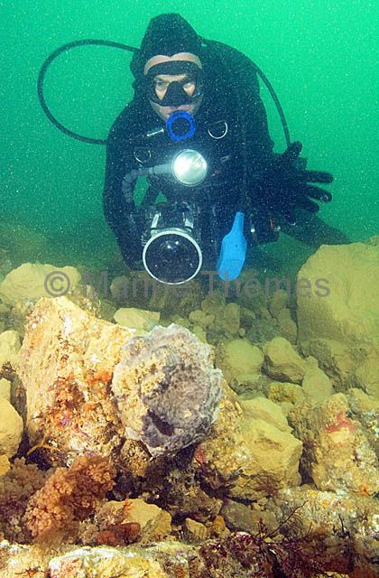 Diver with video camera with soft coral, sponge and kelp on edge of rubble slope created by dredging operations. Diver with video camera with soft coral, sponge and kelp on edge of rubble slope created by dredging operations. dredge dredged broke broken brake destroy destroyed environment destruction devestate devistate devistation devestation before after contrast contrasting compare comparison vertical dive diver diving adventure tourist ecotourism eco tourism tourism adventurous discover discovery discovering vertical Environment |Diver with video camera with soft coral, sponge and kelp on edge of rubble slope created by dredging operations.