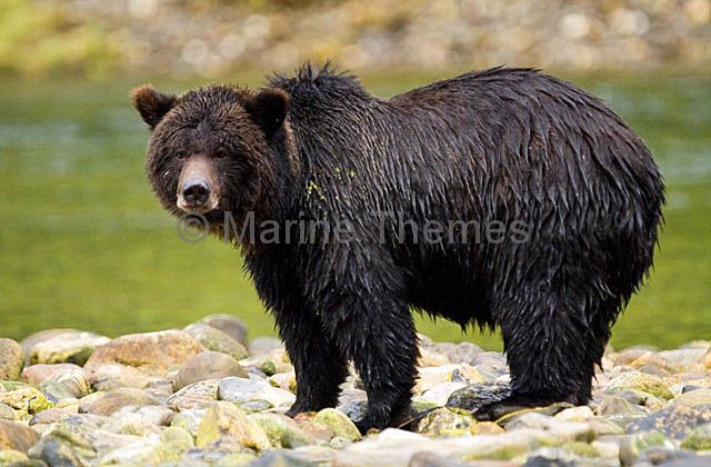 Grizzly Bear (Ursus arctos) or Brown Bear hunting Chum Salmon (Oncorhynchus keta) during their annual spawning migration. Ursidae brown bear Carnivora Suborder Caniformia single one alone lonely isolated individual danger dangerous killer kill predator predater maneater hunt hunter carnivour carnivor carnivore threat threaten curious curiousity curios curiosity look looking inspect inspecting gaze gazing inquisitive inquiring enquiring interested questioning nosy prying |Grizzly Bear (Ursus arctos)