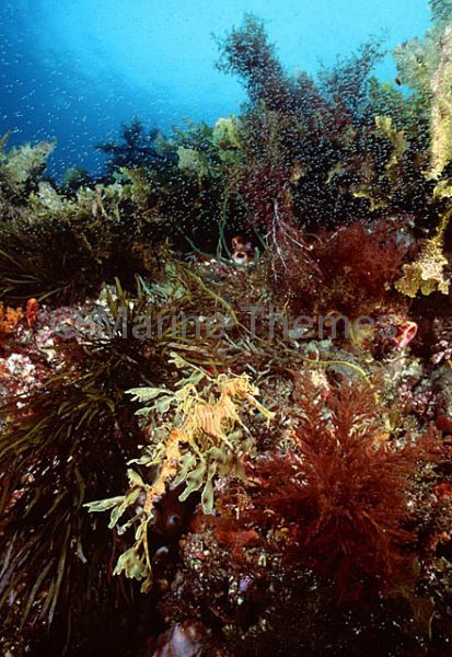 Leafy Seadragon (Phycodurus eques) swimming in mid water above kelp covered reef. single one alone lonely isolated individual camouflage camoflage camouflaged camoflaged hidden hiding hide cryptic colour color colourful colorful vibrant vibrent vibrint strange unusual weird bizarre bizzare bizzarre ugly freak freaky cute friend friendly cuddly cuddle play playful happy smile smiling swim swimming swimmer Seahorses |Leafy Seadragon (Phycodurus eques)