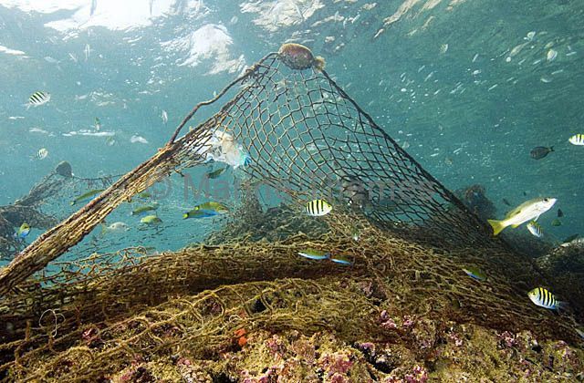 Ghost net tangled on coral reef. Ghost net tangled on coral reef. netting netted cling clinging caught capture capturing catchng catch environment discard discarded abandon abandoned death kill killing fish fishing tangle entangled vertical |Ghost net tangled on coral reef.