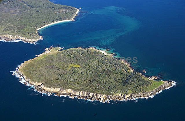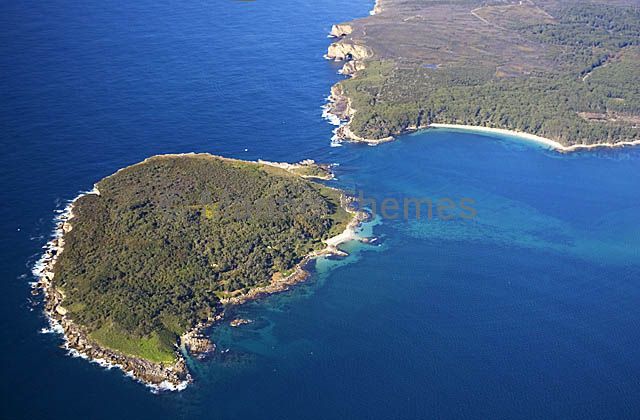 Island off promontory at mouth of large bay with sand bars and seagrass beds. Island off promontory at mouth of large bay with sand bars and seagrass beds. aerial aerials sea grass grasses channel entry enter exit entering exiting narrow close boat boats surf green rock rocks rocky islands bowen murrays murrys murray's murry's jervis heads Researchers and Rockpools |Island off promontory at mouth of large bay with sand bars and seagrass beds.