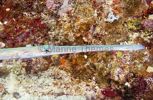 Smooth Flutemouth (Fistularia commersonii) over coral reef flat. Fistulariidae Syngnathiformes single one alone lonely isolated individual slim slender skinny thin narrow slight lean trim curious curiousity curios curiosity look looking inspect inspecting gaze gazing inquisitive inquiring enquiring interested questioning nosy prying strange unusual weird bizarre bizzare bizzarre ugly freak freaky tube tubemouth tube-mouth sad glum unhappy grim depress depressed depressing cry crying grumpy |Smooth Flutemouth (Fistularia commersonii)