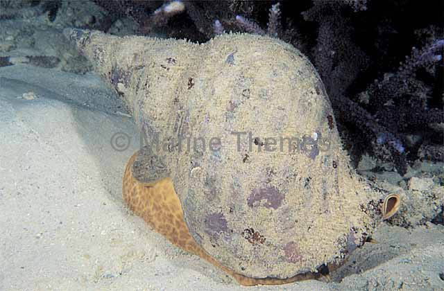 Triton Trumpet Shell (Charonia tritonis) Preys on Crown Of Thorns Starfish. Threatened by shell trade.Triton Trumpet Shell (Charonia tritonis) Preys on Crown Of Thorns Starfish. Threatened by shell trade. slide travel foot big large rare endangered exploited predator curl Molluscs |Triton Trumpet Shell (Charonia tritonis)