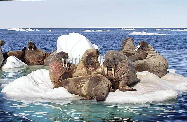 Atlantic Walrus (Odobenus rosmarus rosmarus) Sleeping group with pup. Atlantic Walrus (Odobenus rosmarus rosmarus) Sleeping group with pup. family group many crowded asleep resting ice floe iceflow iceberg iceburg care protection young newborn baby maternal parents tusks Seals |Atlantic Walrus (Odobenus rosmarus rosmarus)